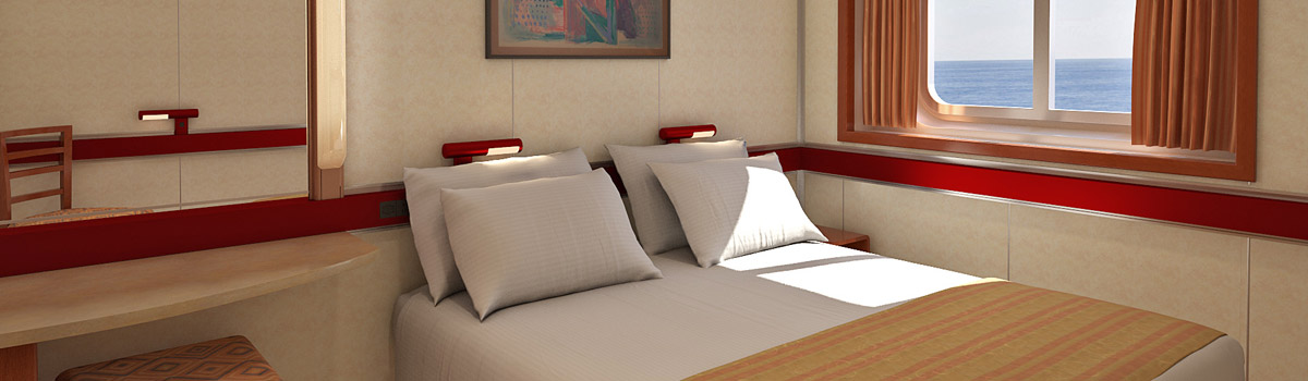 You'll be delighted with how large our stateroom windows are, giving you excellent views of the ocean and each destination. When sleeping late or planning an afternoon nap, the room-darkening draperies glide closed in seconds. Every Carnival guest is assured of spacious, comfortable accommodations. All staterooms have carpeting, ample drawer and closet space, private facilities (shower, basin and toilet), telephone and color television showing first-run films. Our SuperLiners all feature staterooms above ocean level for a more comfortable cruise.